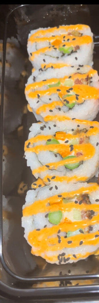 This dairy free Cream Cheese, Veggie filled Roll topped with Spicy Mayo Sauce is your next favorite Roll.